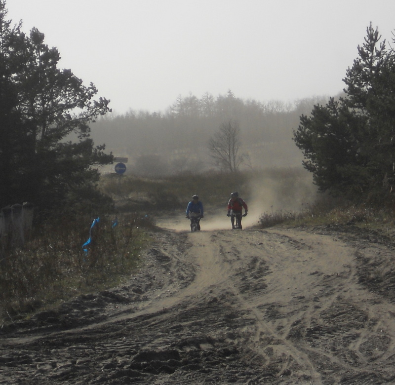 The weather improved dramatically overnight and we all enjoyed the fantastic coastal scenery on the hours drive out to the venue for the middle race. Some bemused scouts, gathering for their Saturday morning meeting, soon got used to the 150 mountain bikes tearing around, warming up, and making sure bikes still worked after the sand of the long race the day before.