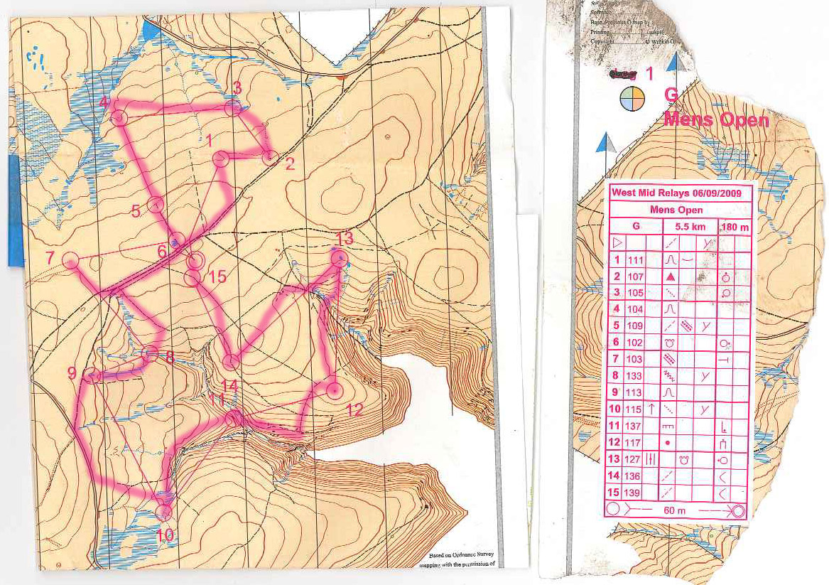 From the map you may notice that the control descriptions are ripped off. I have done this on relays since the advent of waterproof maps as it negates the need to keep unfording the map to check the codes.