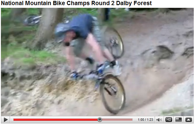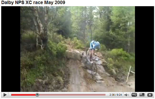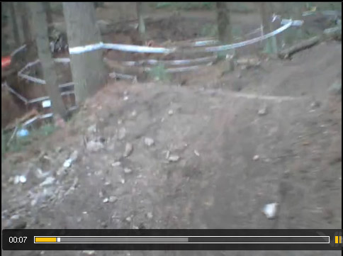 When I got there I was warned by several people it would be a very good idea not to try and ride the course blind, in fact Mammoth Rider Darrell Upton indicated it would be dangerous. So baggy trousered, looking completely out of place, I set off between races for a quick look see at a couple of the more ‘interesting’ parts of the course. It immediately became apparent that this was a good move, it being the most technical course I have ever ridden, which I suppose it should be being a ‘World Cup’ Course. Right trouser leg tucked into my sock I ended up finding the best lines and practicing some of the drop offs getting more nervous about the race to come. With the thought of doing serious damage to myself the week before a selection race I made the decision there and then to get off and use my running legs on the two bonkers descents- the drop off into Worry Gill and Medusa’s Drop. Although both fairly rideable (although I’m still not sure I’d have the bottle to do the Worry Gill drop off – see You Tube videos below) in race conditions with other riders all around and particularly when tired later in the course, I’m not in the business of risking my neck to save a few seconds.
