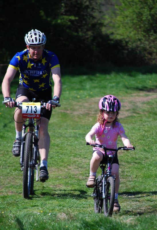 After the under 10’s race Holly wanted to do some of the course so I took her round. She had a great over the handle bars moment when her front wheel slipped into a furrow, but other than a few tears she was back on the bike and sprinting away to beat Daddy to the chocolate biscuit prize for the first back. She was also asking about how to unclip from SPDs 🙂
