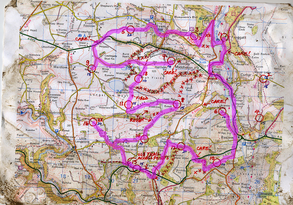 I seemed to pick a good route and even ventured down a few muddy tracks that were new to me. I left the two controls on top of Baslow edge but managed with a huge effort at the end to get the rest. I really had to fly to get back from my last control near Baslow and got in just 1 min 50 secs over time.