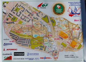 The first competition proper was a middle distance race. The winning time is designed to be 50 – 60 minutes with riders covering approximately 15km and taking in, on this occasion, 22 controls. The order of the controls is fixed but riders choose the optimum routes between them. The finish arena was a ski club house where, throughout the winter, the Swedes indulge in their passion for cross country ski touring and racing. With a spectator loop, commentary and split times coming from radio controls in the forest the atmosphere was good and a few locals turned out to watch.