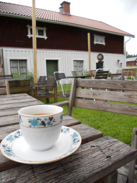 The organisers of these events normally provide an informal warm up, or ‘model race’. Maps with a few checkpoints (referred to as controls from now on) in forests which are similar to the actual race terrain in the following days give riders a chance to tune into their surroundings, give the legs a spin after long days spent travelling and most importantly to make sure the bikes still work. We spent a glorious couple of hours hooning around a local forest, skitting over lots of rooty single tracks until the rain came. A café was conveniently marked on our map, so shelter & refreshment were sought. This odd cafe was essentially someone’s front room with a couple of tables and umbrellas outside. The deal was you chose a little chintzy china teacup and saucer and were allowed to refill your cup 3 times. We eked the coffee out hoping the rain would ease but after it started to come through the umbrellas we headed for home and more bike fettling.