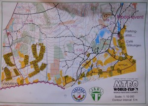 We knew the maps were not waterproof so in my pre-start minute I did not do any planning ahead, I just concentrated on folding my maps so they would stay in one piece. I ended up woith a rolling start through the startline just as the last beep went, sweet !