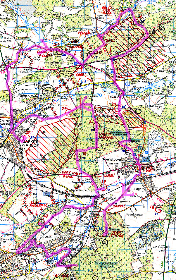 Essentially the map going into #151 from Coton needs some work and the bridleway is not obvious on the ground. I, like many, lost the track and ended up jumping ditches and fences trying to get back in the right place. I’m not sure how much time I lost but it was very slow riding on the edges of ploughed fields. The going got worse on the way to #152 and the map round all the farms again needs some work and I lost time making sure I wasn’t straying onto private roads or footpaths. Coming back-out, again confused, I decided Id lost too much time and binned the last 30 pointer and headed for my comfort zone, Cannock Chase. Luckily I know this part really well so I didn’t really need to navigate, just head down and blat the hills.