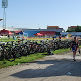 There then started a bizarre warm up with most competitors riding round and round the cinder running track that surrounded the pitch. I had a reasonably late start and by the time I came to warm up, a cloud of dust had lifted over the track. Eventually I decided after about 20 minutes that the amount of dust going into my eyes and lungs was probably counter-productive to the warm up, so I stopped and went to the toilets to wash off. Taking my helmet off I looked like a badger: great brown dusty stripes in the pattern of my helmet vents all over my bald head. Someone said I looked like I’d just finished the Paris Roubaix!