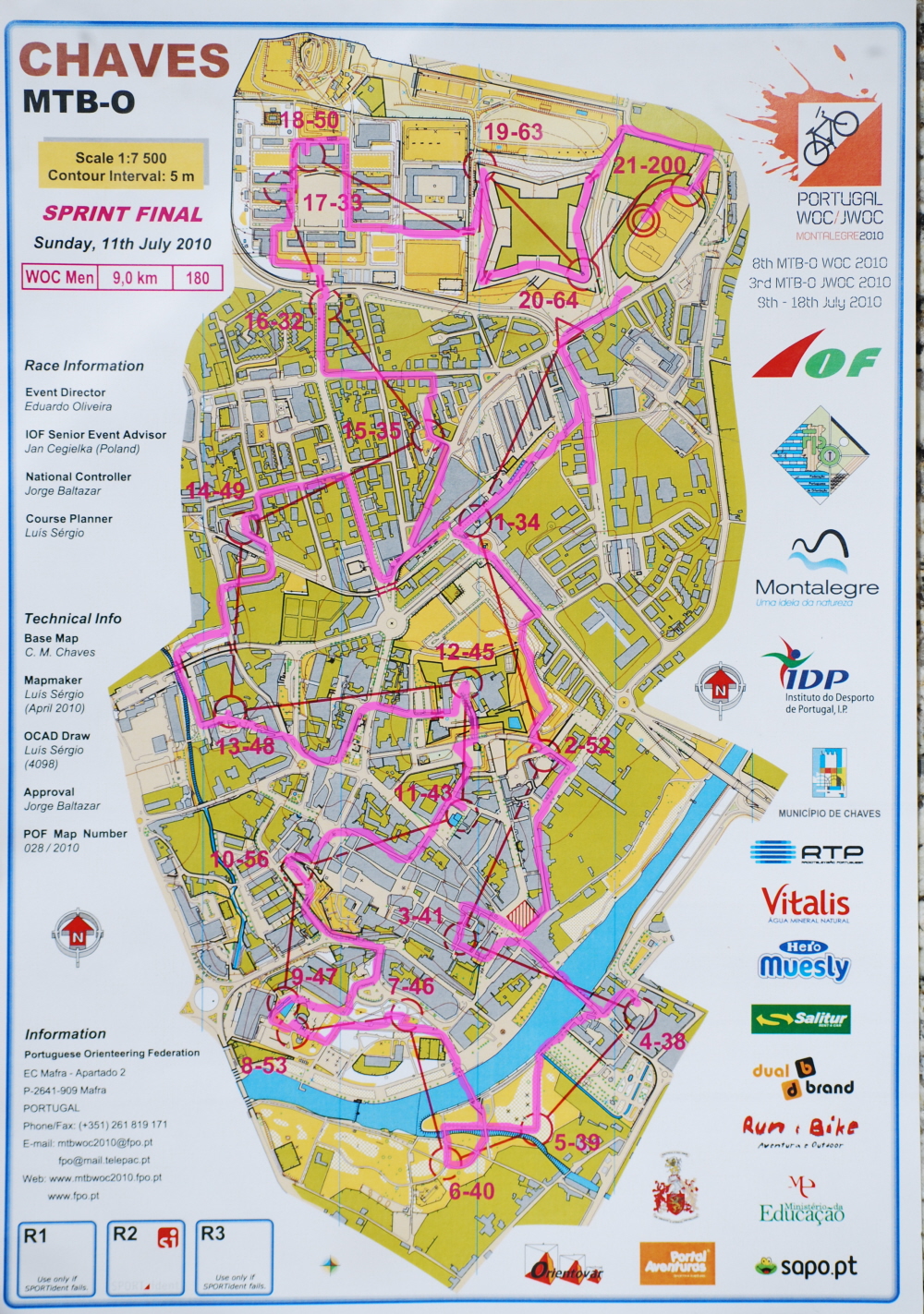 The 2010 World MTBO Sprint Championships was held in the old town of Chaves, in Northern Portugal. All competitors were quarantined inside a football stadium 30 minutes before the first start to ensure a fair competition, and the stadium was where the competition would culminate after 25 minutes of frantic racing round the narrow alleys and parks of the town.