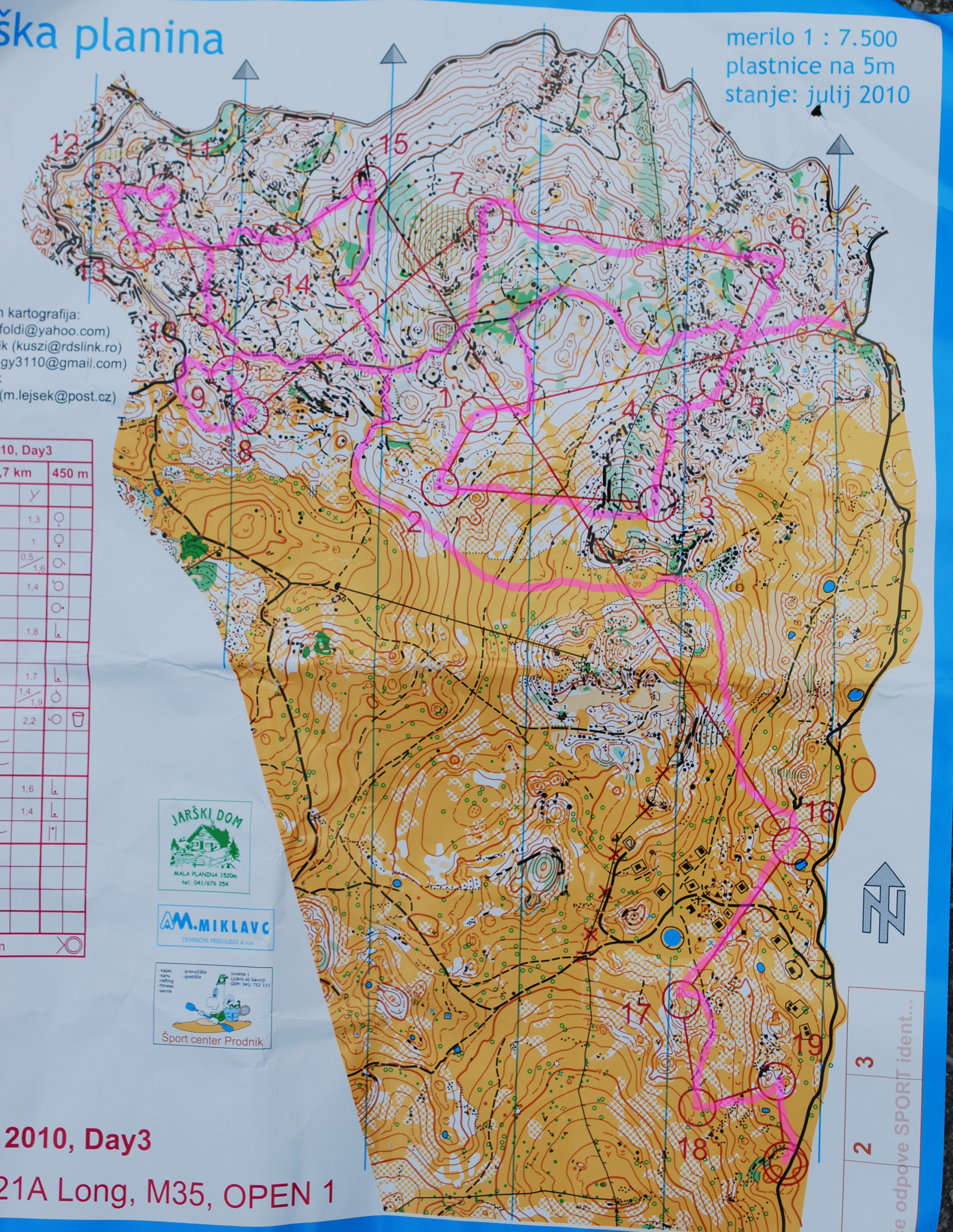 . Eventually I re-located on a col before taking a safe route in but I must have lost a couple of minutes. I ran clean for the rest of the course except for one bad mistake where I left a track at the wrong junction, but relocated quite quickly. The course was full-on, massive complexity, low visibility and really uneven and rough under foot, with rocks, fallen trees, steep crags, in fact just about every natural impediment imaginable except water. I fell back on super-accurate compass bearings, picking off features as I went, but it worked. We had a long leg right across the map just before the end. Although there was an obvious long route round on the roads and tracks I decided I hadn’t come al the way to Slovenia to do that, so took the straight route over the saddle and down into the control.