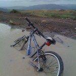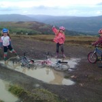 In the afternoon a couple of us took our kids up to the top of the hill above the centre, an area of old quarry spoil heaps for a ride on their own bikes. They had a great time trying to ride through deep puddles and mud, tackling tricky descents and generally getting very muddy. Holly had a nasty crash at speed as she came back into the centre, catching her front wheel obliquely on a kerbstone, rather than crossing it at 90 degrees. I hadn’t taught her that yet!