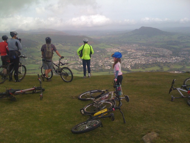 Attending, too, was a group from The Cranks, a mountain bike hashing group (a bash) based near Cheltenham. We all left the centre following a specially created map heading for the Blorenge (a huge domed hill just up the road). We must have been quite a sight, at least 30 bikes including 3 tag-alongs with kids. The weather was being kind and soon we were all enjoying a great ride, the group splitting and reforming as ability and fitness dictated, before eventually meeting up at a pub for lunch.