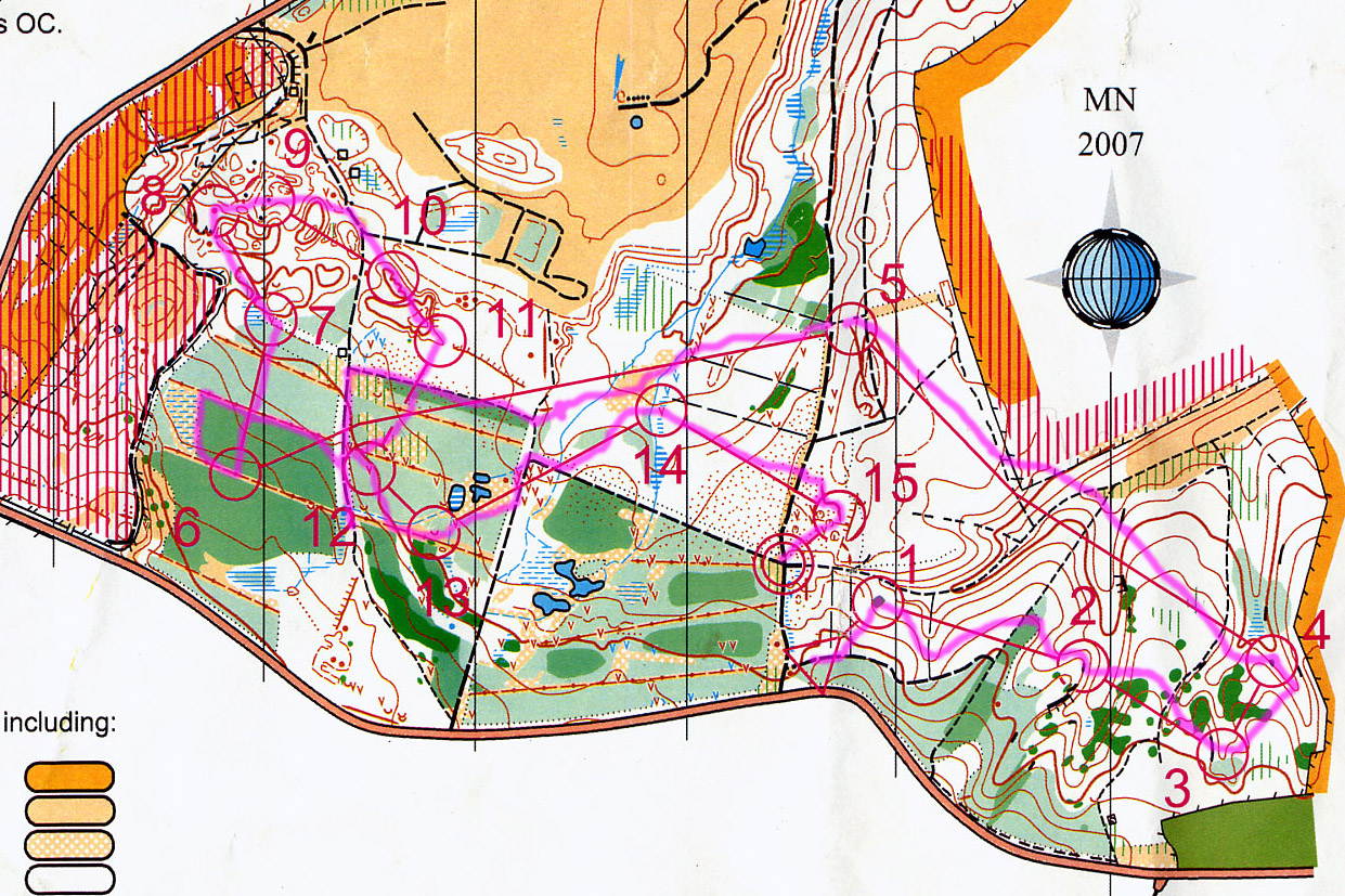 The course was designed to test different areas of navigational, physical and psychological skills: Long legs with route choice, short legs, difficult legs, uphill and low visibility.
