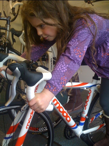 Holly now has her eyes on the Moda junior road racing bike (the Moda Minor which luckily it’s still to big for her but only just) and has asked Matt for a price on 2 x 20 inch blue tyres for her Isla bike.