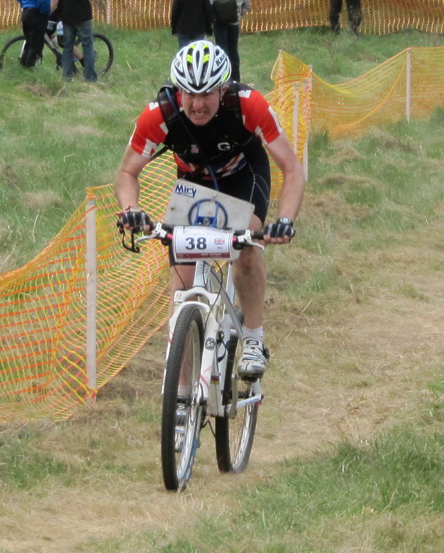 The first loop took about 15 minutes before we had a spectator control and a compulsory route back past the start. Although the commentator said I was in the second chasing group I was surprised to be then be caught by MTBO superstar Denmark’s Erik Skovgaard Knudsen, who I promptly tucked in behind as he seemed to be going my way. As we cruised along a narrow track I kept with him comfortably and it entered my mind that maybe he isn’t really a superstar and I could perhaps stay with him. I then realised he was sorting his map out and regaining some composure (he later told me he had had a crash a few minutes before) before he suddenly exploded out of the saddle and simply disappeared putting at least 150 metres into me by the end of that fairly flat leg, awesome riding…..