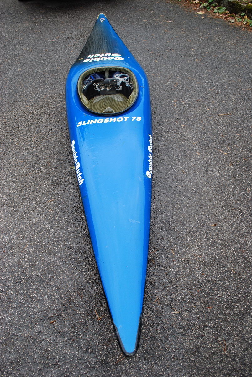 Double Dutch Slingshot 75 (cut for 75kg paddler).  Fair to good condition, stored for 4 years without use, hence reason for sale. Includes Peak airbags. Sensible offers only, please.