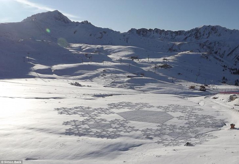 Snow crop circles in the Alps. http://www.dailymail.co.uk/news/article-2104755/Crop-circles-Alpine-style-Artist-creates-incredible-impression-giant-patterns-snow.html