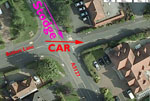 the main road along which I was travelling. I managed to turn slightly and crashed into her wing mirror and passenger door managing to lean onto her mirror as she slowed and took me round the corner into the side road, before I fell off onto the pavement. I was a little shaken but there was no damage to myself or the bike. A couple of other motorists stopped and ran to help, which was extremely kind, as were their offers to drive me home. The lady was very apologetic, almost in tears, saying she just had not seen me. I didn’t get stroppy or anything, there is just no point, she will be more careful next time so we all went our separate ways. I have posted a little diagram for those that need the full facts 😉
