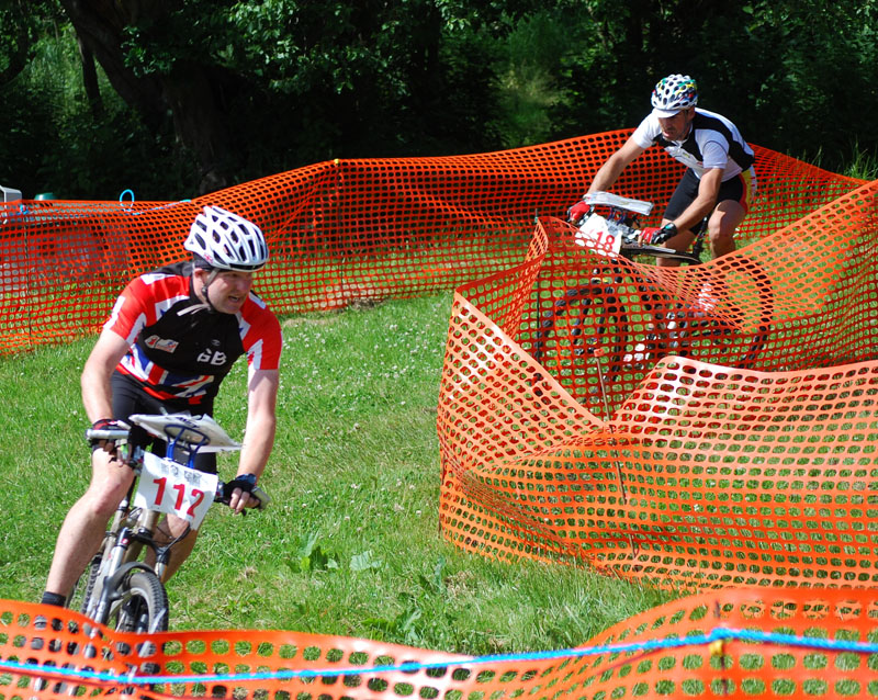 The first 400m out of the event field were tough, marshy with long grass and very bumpy but once out I got into the flow was riding and navigating well. I had a small wobble on two controls in the middle of the course perhaps losing 30 secs or so after missing a couple of track junctions but was still going well when I got to the complicated spectator area for the first time. I left the spectator control and nailed the next 5 controls riding really well until ……. 🙁